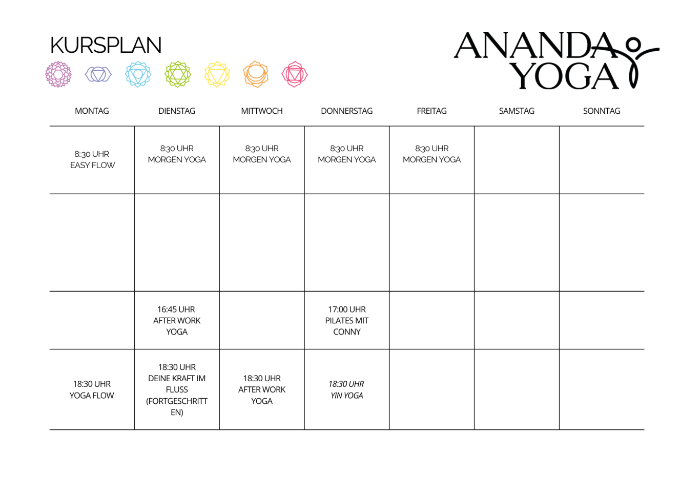 Bei mir findet ihr Yogakurse für jedes Level. Egal ob ihr erst am Beginn eurer Yogareise seid oder schon seit Jahren praktiziert. Alle Kurse finden im neuen Yogastudio am Katzelbach 7 statt.